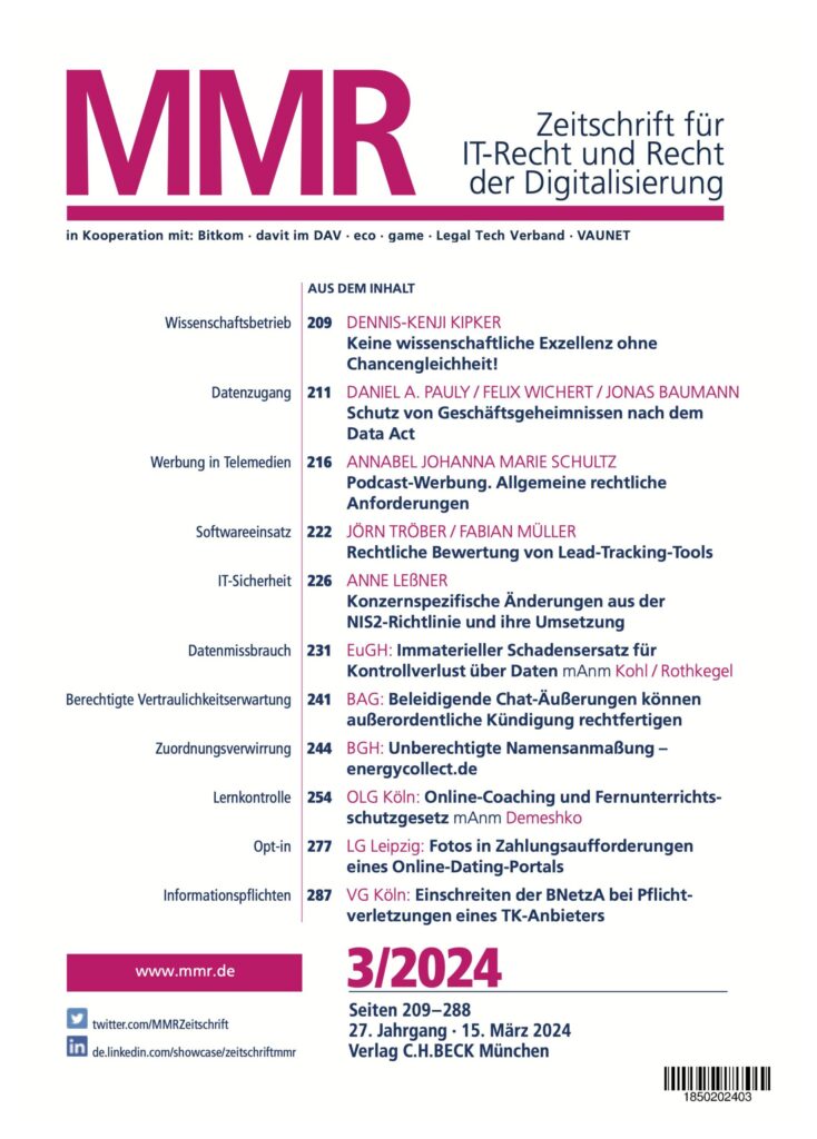 Von Fabian M. Müller | 15.03.2024 Rechtliche Bewertung von Lead-Tracking-Tools Identifizierung von Webseitenbesuchern zu Werbezwecken Den ganzen Beitrag lesen →