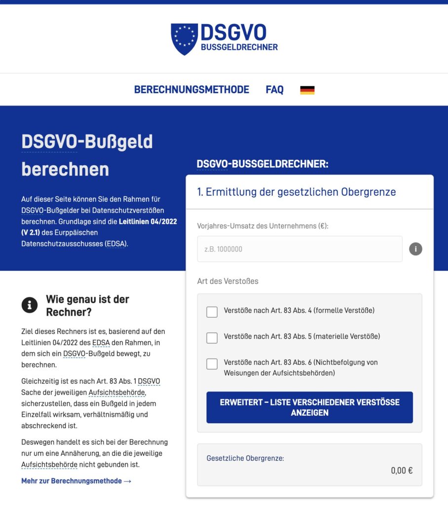 Seit diesem Wochenende ist ein neues Projekt von mir online: Der DSGVO-Bußgeldrechner!
